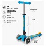 Самокат MICRO серії "Mini Deluxe Foldable LED" – БЛАКИТНИЙ ОКЕАН (складаний, до 50 кг (kg), триколісний, світло) MMD200